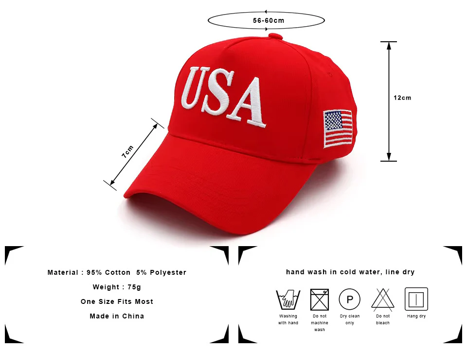 - Bold Design: Classic red hat featuring “USA” with precision embroidery.